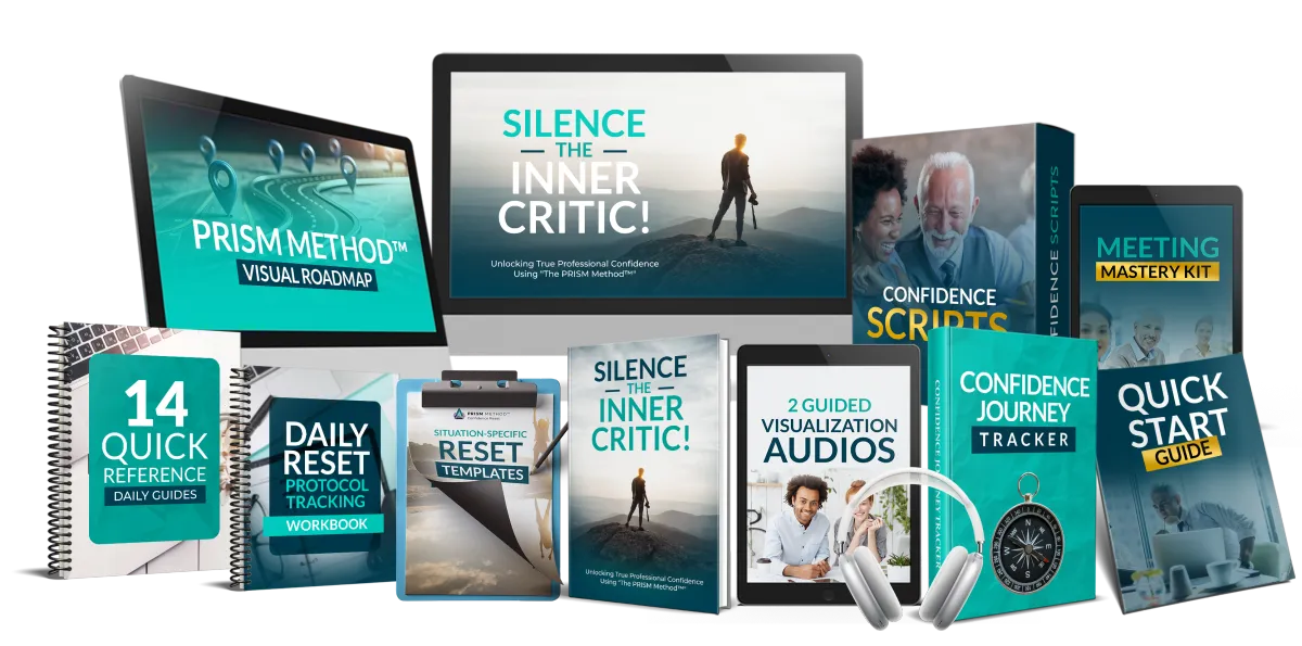 A: Most confidence advice is vague, generic, or built for personal life — not high-stakes professional situations. The PRISM Method™ is designed specifically for the workplace, with tools you can use right away in meetings, presentations, reviews, and tough conversations. It’s not fluff. It’s practical, proven, and built for busy professionals who need results — not pep talks.